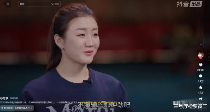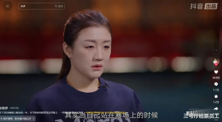 比如陈梦那期访谈,她要谈的是从高点跌入谷底这一东说念主生阶段中所遭遇的大界限非议;是陪伴2020年拿下奥运冠军,到接连几次失败,再捱到2024年卫冕巴黎奥运女乒单打冠军本事,所历经的痛苦、失望、注目和审判。