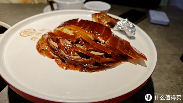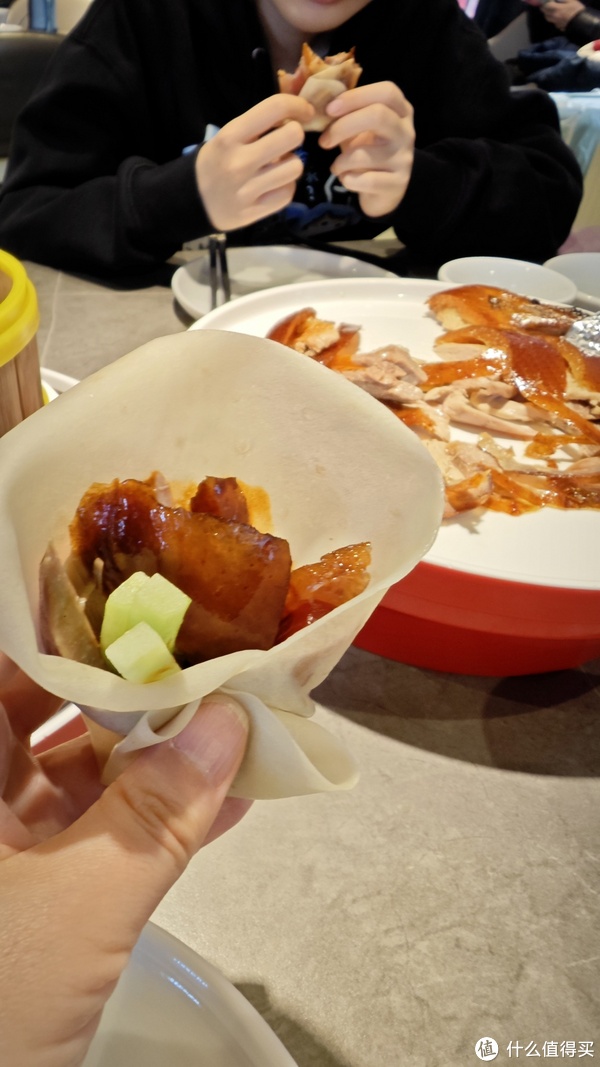 吃饭呢,细目要尝尝烤鸭吧。就我的感受来说,全聚德、四季民福、利群这些如实著明,但当前的技能,烤鸭的滋味差的不太多,尤其是旅游景点这种作念的很快的,没必要非去这些又列队又贵的场所。我选了鲜鱼口内部有一家叫璟雅轩的小馆子,环境可以,尤其二楼窗景,能边吃边看着古香古色的胡衕子东谈主来东谈主往,酒旗飞行。当前错峰来,齐没列队径直上桌。烤鸭滋味不差,菜品也量大实惠,各人点评上有各式套餐,我和妮儿要了半套烤鸭、宫保鸡丁、三个北京特色小凉菜,再加米饭,一共170元,还剩了无数份宫保鸡丁、肉皮冻。对!你没看错!这里烤鸭可以要半套!烤鸭口感亦然外酥里嫩、香气挺浓。甜面酱滋味挺正,卷饼嗅觉是半制品,不外当前的饼基本齐这样了。在前门这地界,我认为这个性价比很可以了。