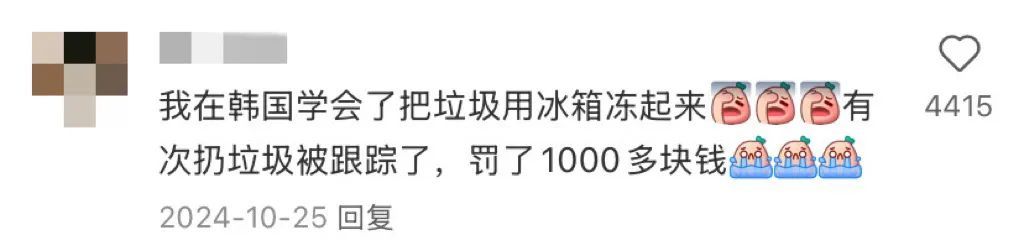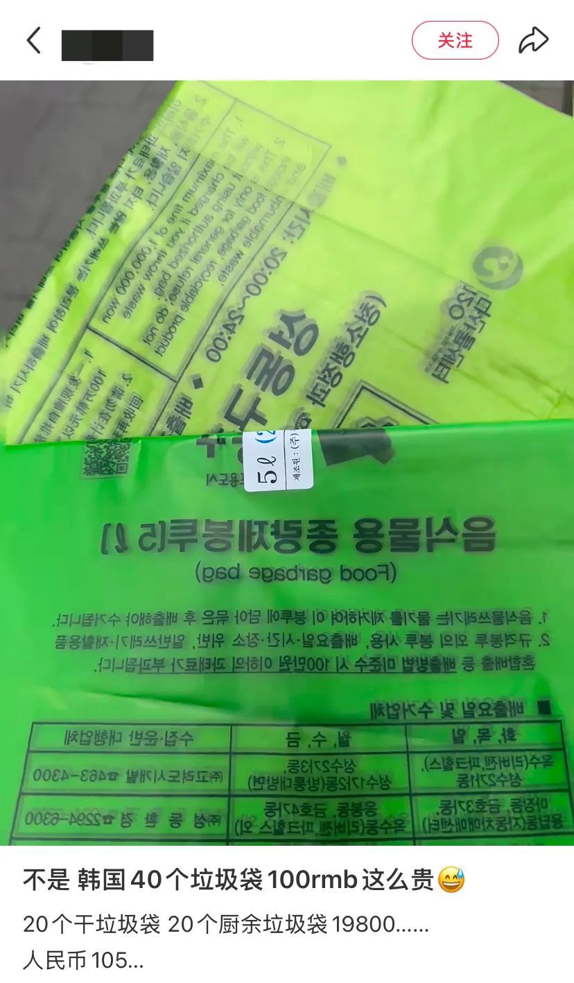 韩国的垃圾袋必须花重金购买(外卖袋不行当垃圾袋),况兼大部分东谈主一次根柢装起火,为了幸免垃圾放深化出现异味就会暂时用雪柜保存。