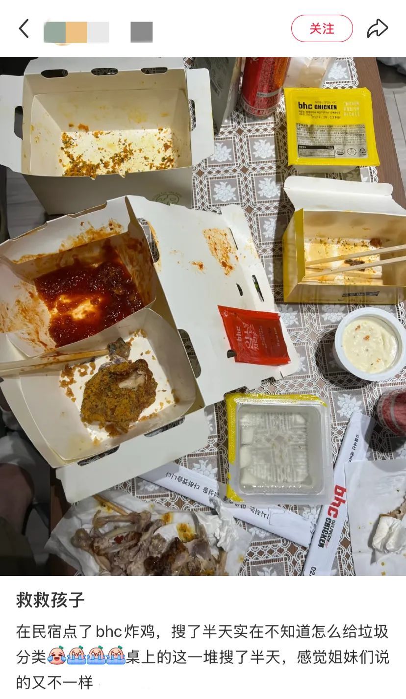 淌若没吃完还手动把骨头剔干净(垃圾分类)。