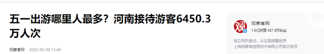 信源来自—五一出游那处东说念主最多?河南管待搭客6450.3万东说念主次