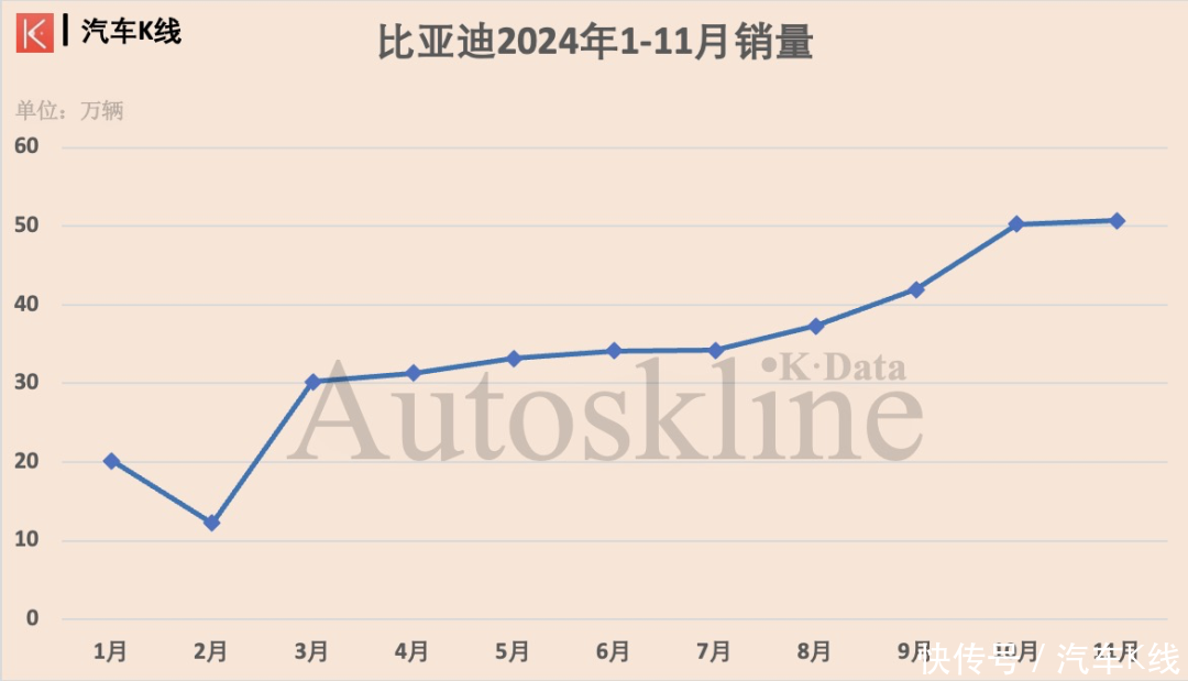 12月1日,比亚迪发布公告夸耀,11月销售新动力汽车50.68万辆,汇聚第二个月销量败坏50万辆,这是一个很“吓东谈主”的数字。一个月跳动上汽可能是运谈,两个月可能是正巧,那么汇聚几个月稳坐销量第一宝座,便是实力。