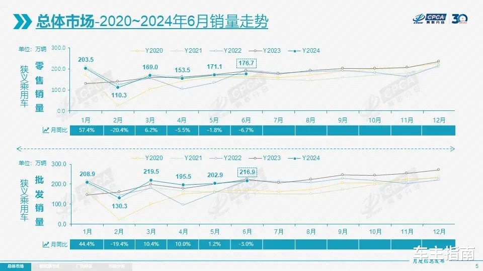 6月国内乘用车市集零卖176.7万辆,与去年同时比拟出现了6.7%的彰着下滑,而这也令第二季度(4-6月)销量出现了贯穿三个月同比下滑的情景。