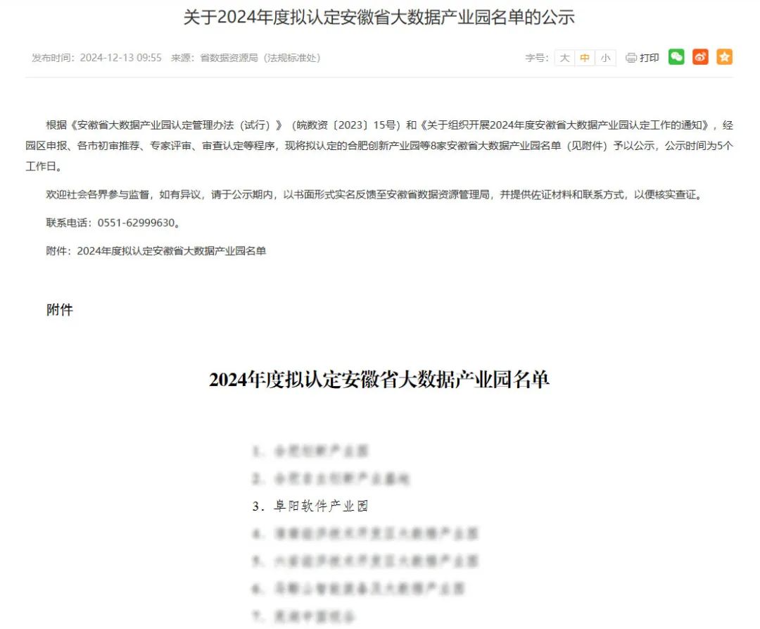 近期,安徽省数据资源管束局公示了2024年度安徽省大数据产业园名单,麦腾阜阳软件产业园凭借其突出施展,荣登榜单!