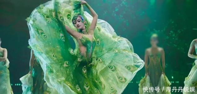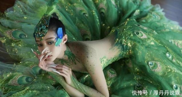 关晓彤身披翠绿孔雀长裙,脖颈轻扬,指尖微颤。