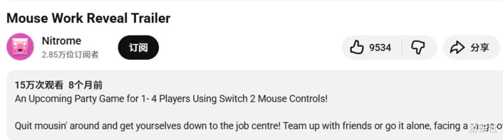 一年多的开发时辰就这样白白耗损了,不外Nitrome莫得就此停驻脚步。他们运转面向全新的Switch2平台,开发新作《Mouse Work》。