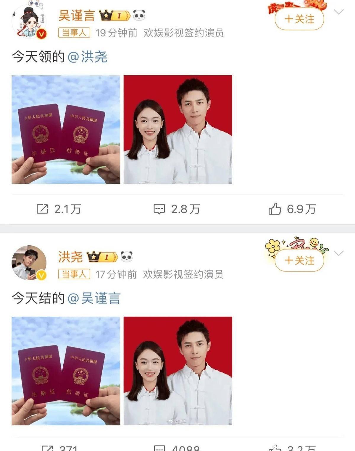 发布日期:2024-09-23 06:08 点击次数:124在文娱圈中赌足球app,爱情老是一个不朽的话题。9月13日,一则令东谈主惊喜的音讯在酬酢媒体上飞速传播开来:驰名演员吴谨言与洪尧晓喻娶妻。这对也曾被绯闻围绕的情侣,终于活着东谈主的期待中步入了婚配的殿堂。