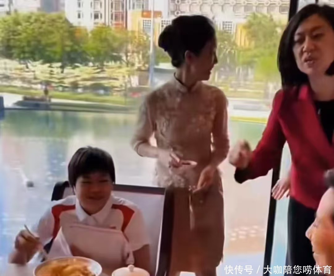 已矣了澳门城市大学的活动,全红婵一滑东说念主来到澳门永利皇宫酒店用餐!有网友晒出全红婵用餐的像片。永利皇宫酒店董事长陈志玲亲身露面理睬。全红婵还与其进行了合影!全红婵穿戴国度队的队服,坐在椅子上。左手作念出生效的手势!在全红婵的右手边是陈志玲。她穿戴红色的外衣,下身是玄色的长裤。一头短发,职场精英的形象。她左手扶着全红婵座椅的靠背,右手对着镜头作念出生效的手势。在全红婵的左手边是酒店的大厨。他上身穿戴白色的使命服,下身是玄色的长裤。身材微胖!他站在全红婵的死后,左手端着盘子,盘子内部是粉丝。很清晰,她是在为全红婵就业。雇主和大厨亲身就业,完全的贵客级待遇!