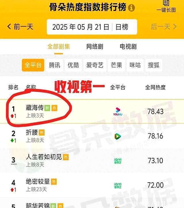 按理说,《垂头》这剧情没误差,台词也顺口,演员也牛逼,妥妥的爆款预定。可万万没念念到,中途杀出个《藏海传》,径直把《垂头》给干趴下了。这《藏海传》开播才三天,就窜到收视第一,这速率,险些跟坐了火箭似的。