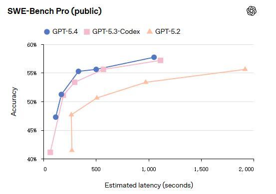 另外,GPT-5.4 还和会了 GPT-5.3-Codex 的编码上风,在 SWE-Bench Pro 基准上与之捏平或阐扬更优,同期延长更低。Codex 中的“/fast”模式可栽植 1.5 倍 token 速率,保捏同等智能水平。